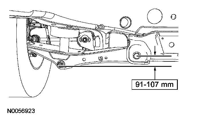 5. If ride height dimension D is not within specification, use the scan tool to vent or fill the air suspension to the correct dimension.