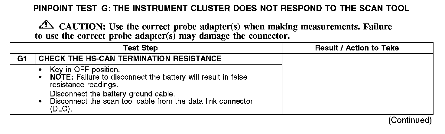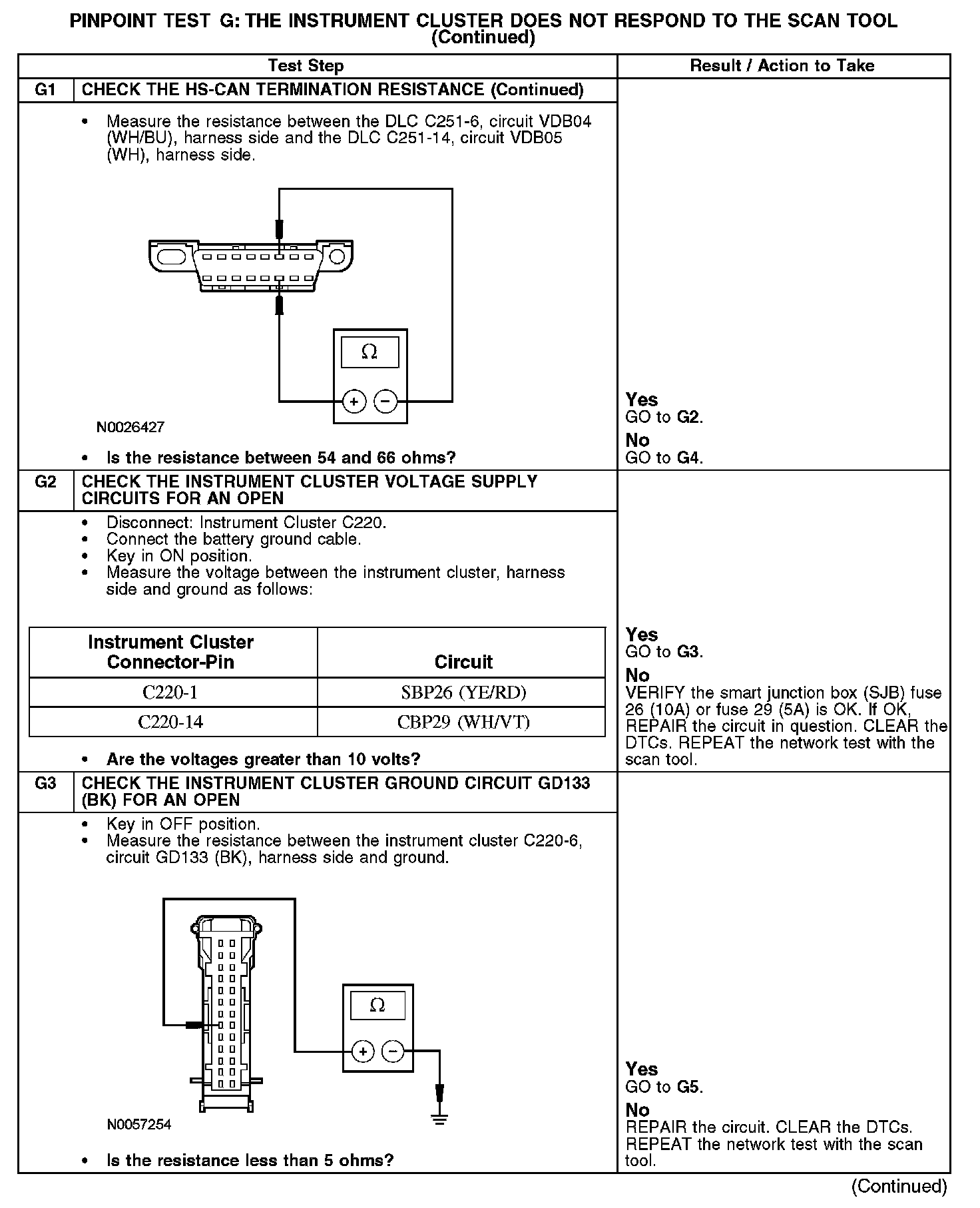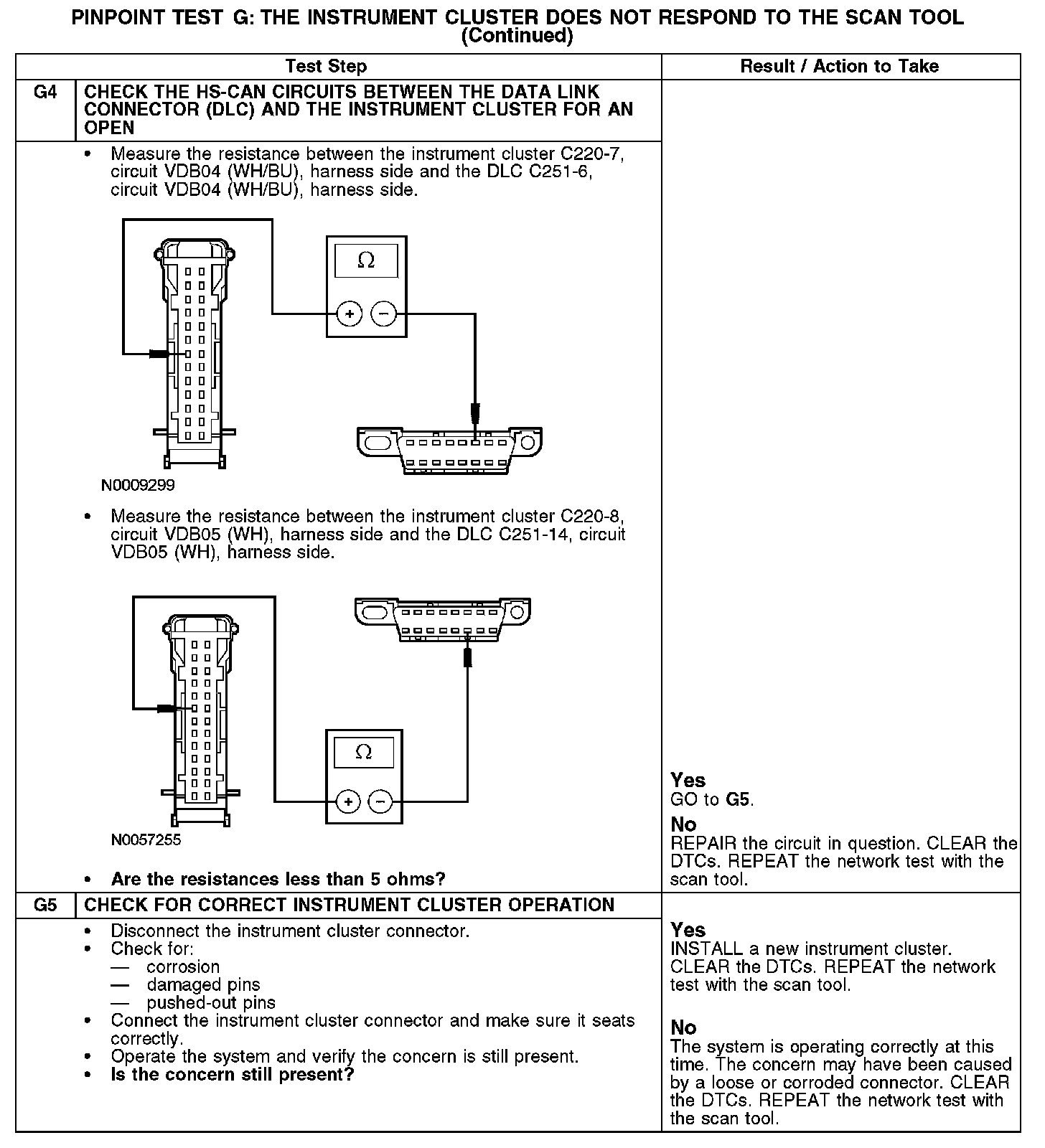 Test G: The Instrument Cluster Does Not Respond To The Scan Tool