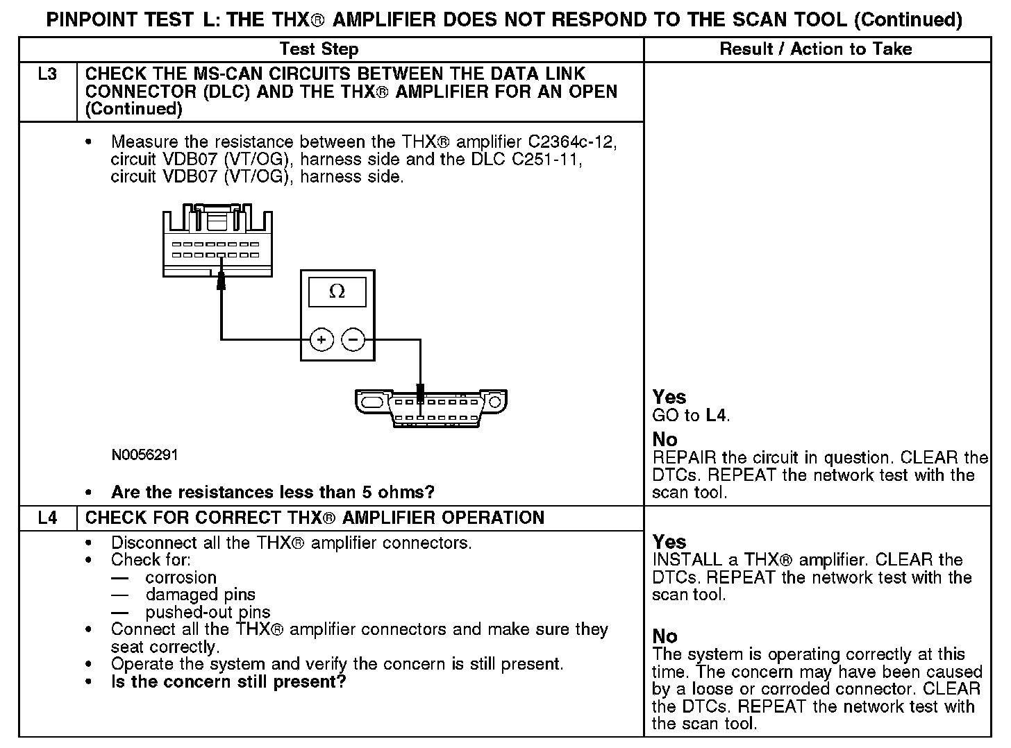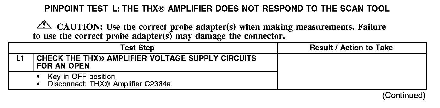 PINPOINT TEST L: THE THX(R) AMPLIFIER DOES NOT RESPOND TO THE SCAN TOOLL1: