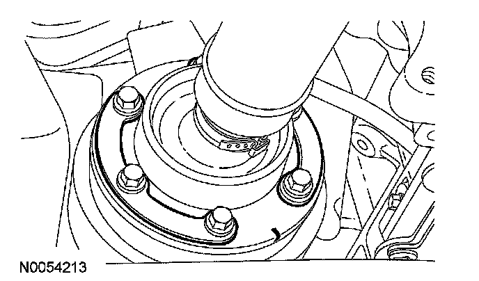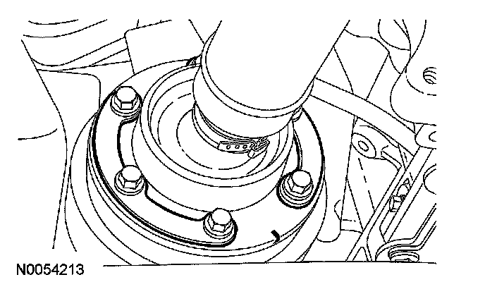 2. Index-mark the front driveshaft to the universal joint drive pinion flange.