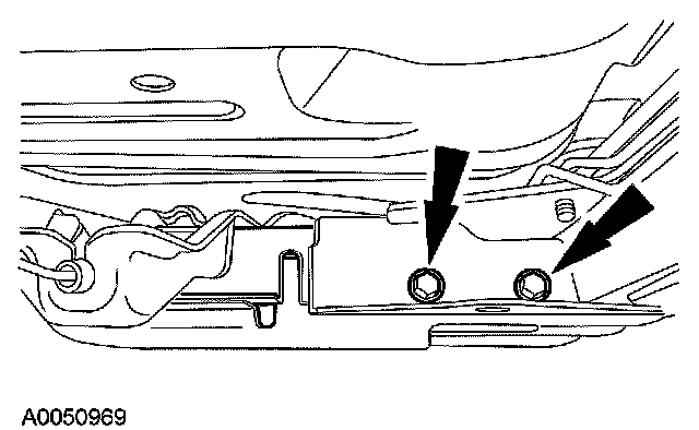 14. Remove the bolts and remove the parking brake cable bracket and position aside.