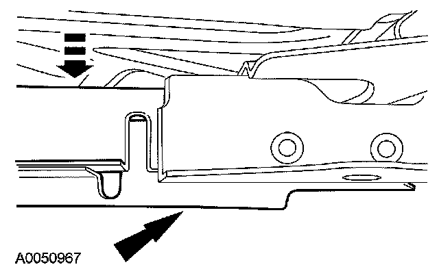 16. NOTE: The crossmember is a press fit in the crossmember pocket, it may be necessary to pry the crossmember out of the crossmember pocket. Be careful not to damage the crossmember.