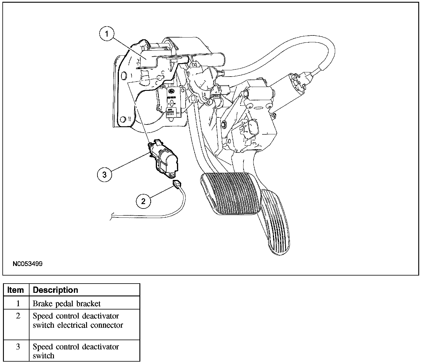CAUTION: Do not press the pedal down when removing or installing the speed control deactivator switch, as the switch will be damaged.