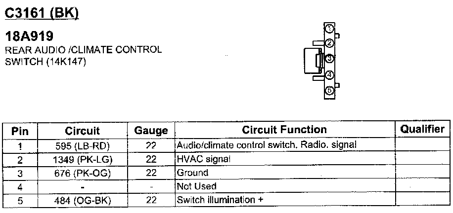Rear Audio/Climate Control Switch