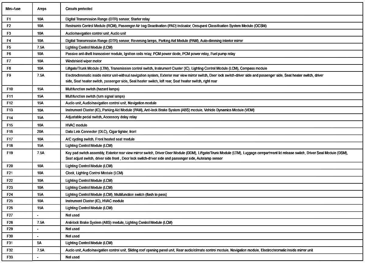 The fuse panel is located below and to the left of the steering wheel by the brake pedal. Remove the panel cover to access the fuses.