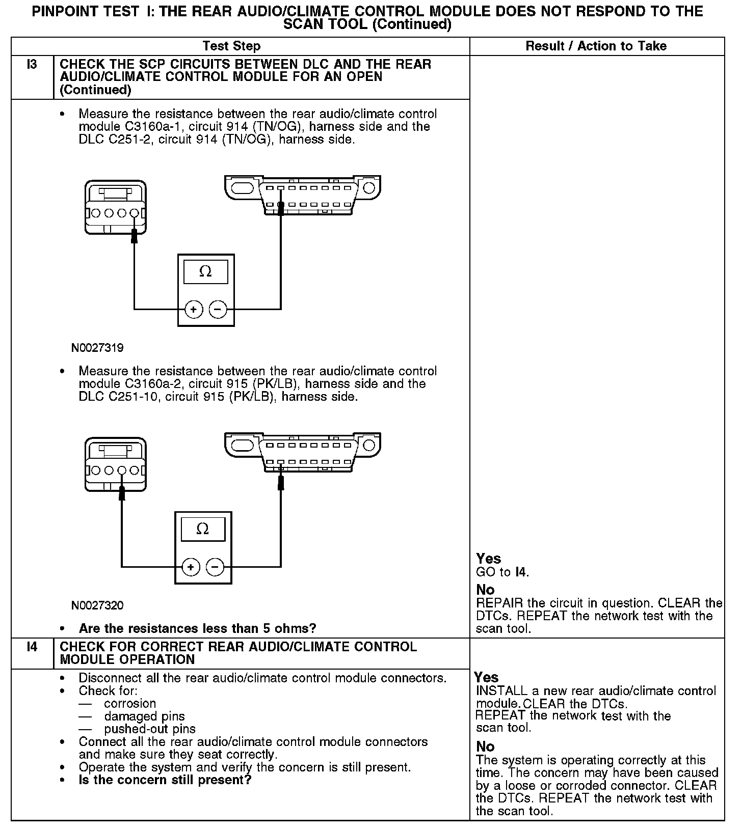 PINPOINT TEST I: THE REAR AUDIO/CLIMATE CONTROL MODULE DOES NOT RESPOND TO THE SCAN TOOLI1-I3: