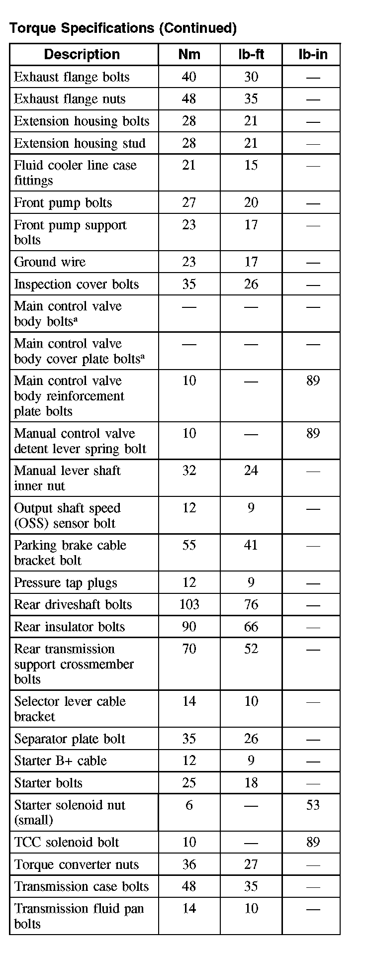 Torque Specifications (Part 4):