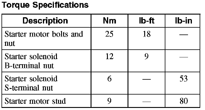 Starter Motor: Specifications