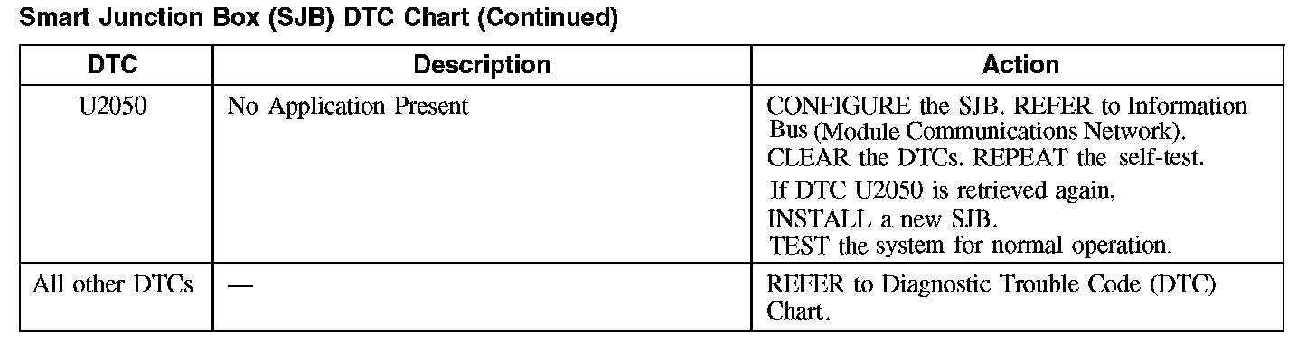 Smart Junction Box (SJB) DTC Chart