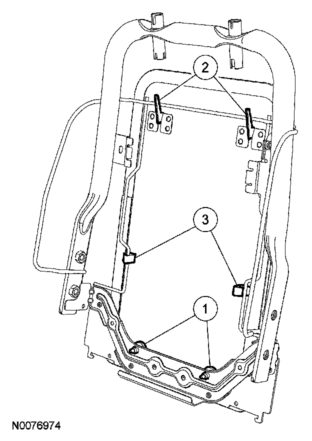 2. NOTE: The seat backrest trim cover and foam pad have been removed to show the backrest trim panel retainers.