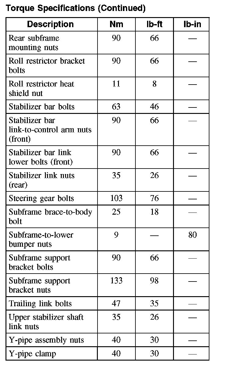 Torque Specifications (Part 2):