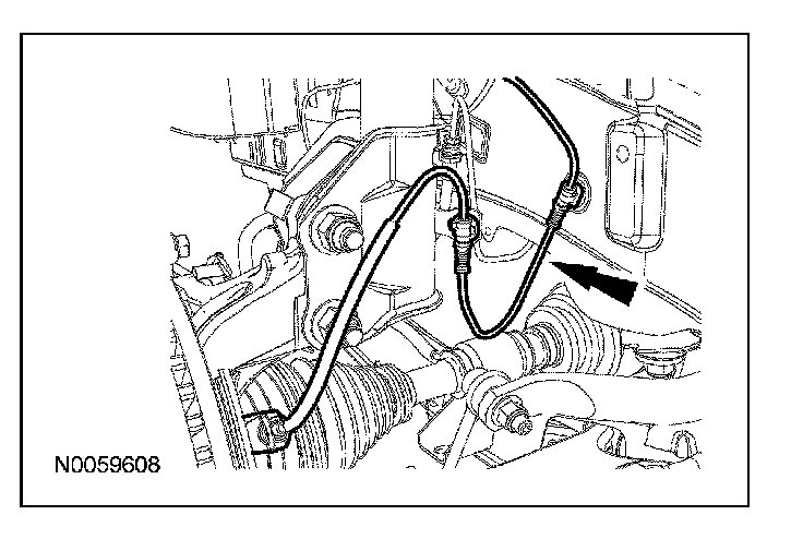 6. CAUTION: The wheel speed sensor harness must be routed as shown or damage to the harness during vehicle jounce and rebound can occur.
