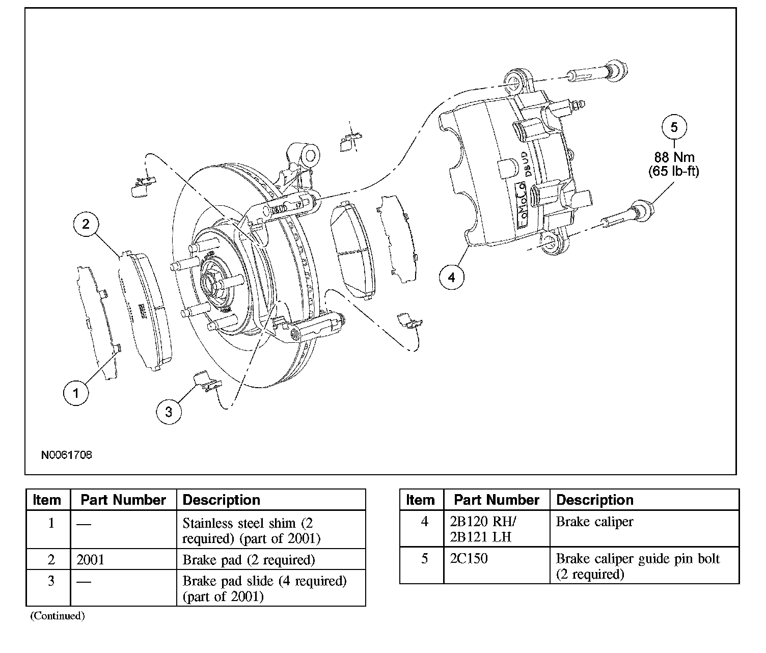 WARNING: Always install new brake shoes or pads at both ends of an axle to reduce the possibility of brakes pulling vehicle to one side. Failure to follow this instruction may result in uneven braking and serious personal injury.