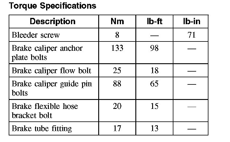 Torque Specifications, Front