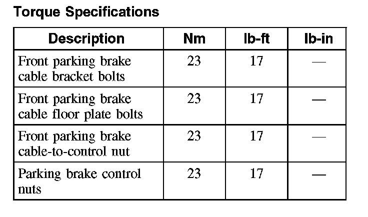 Parking Brake System: Specifications