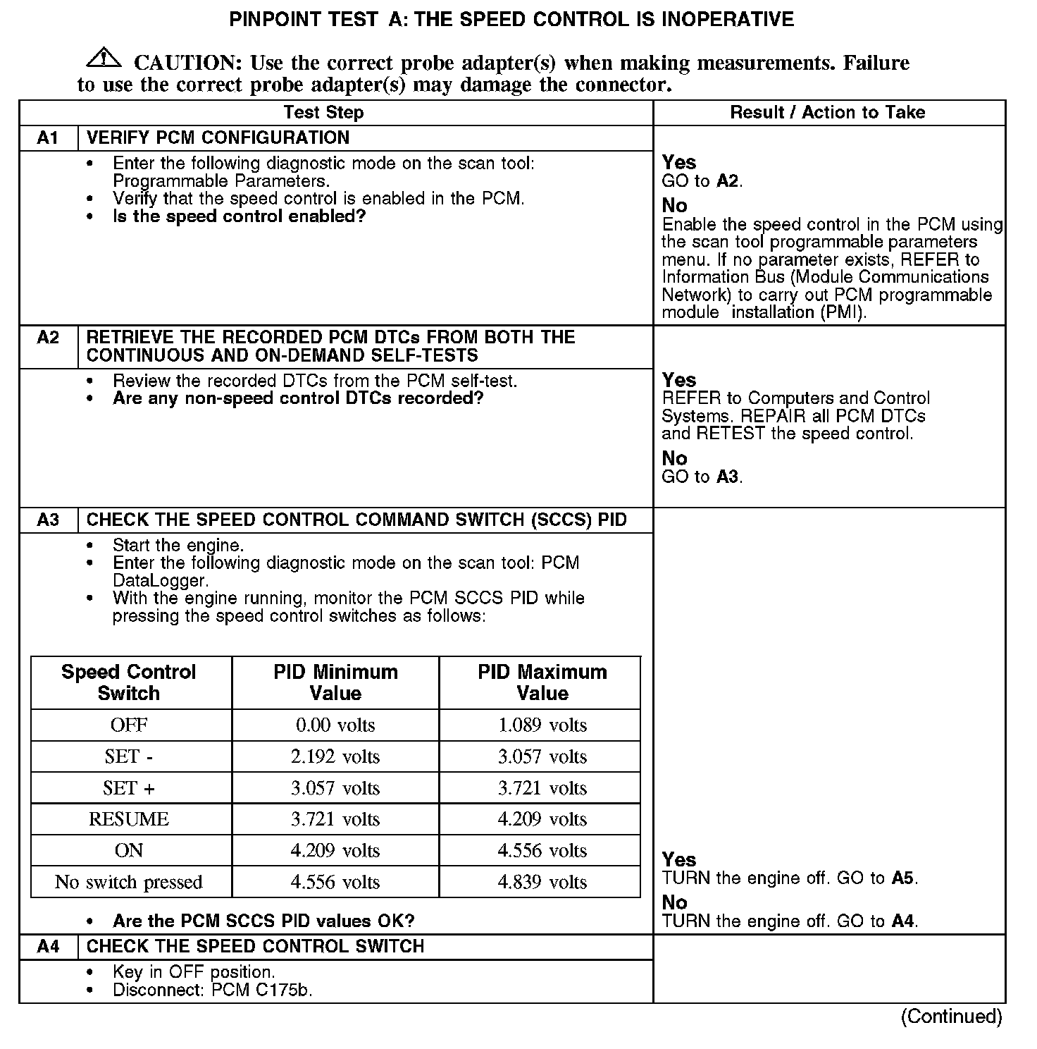 PINPOINT TEST A: THE SPEED CONTROL IS INOPERATIVENormal Operation