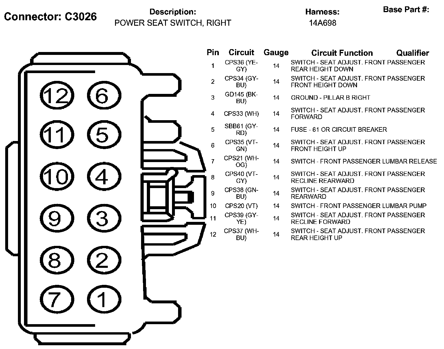 Power Seat Switch, Right