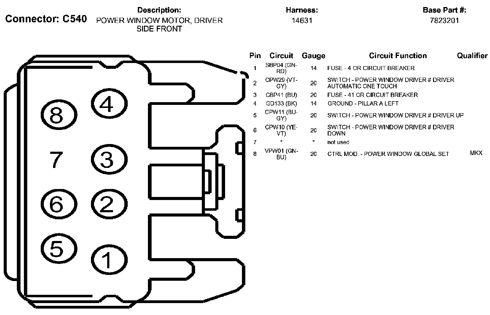 Power Window Motor, Driver Side Front
