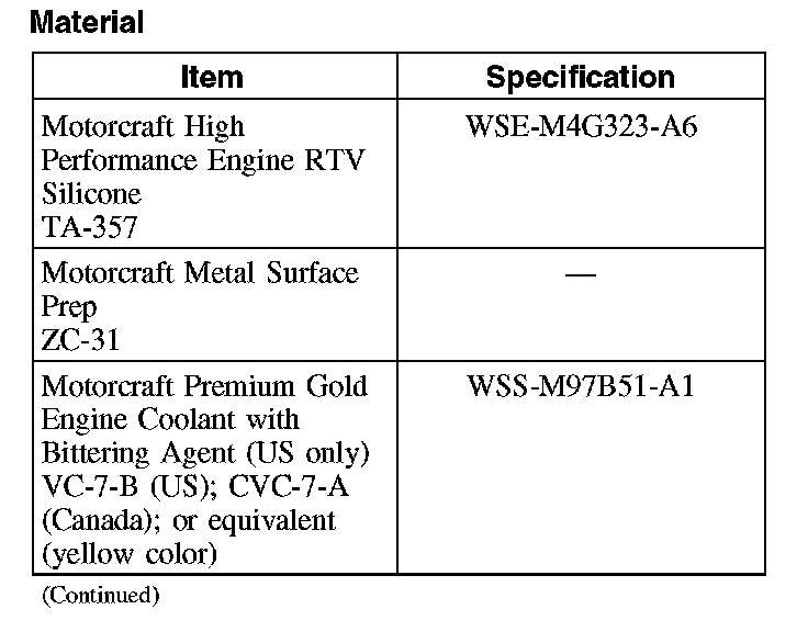 1. CAUTION: Failure to use Motorcraft High Performance Engine RTV Silicone may cause the engine oil to foam excessively and result in serious engine damage.
