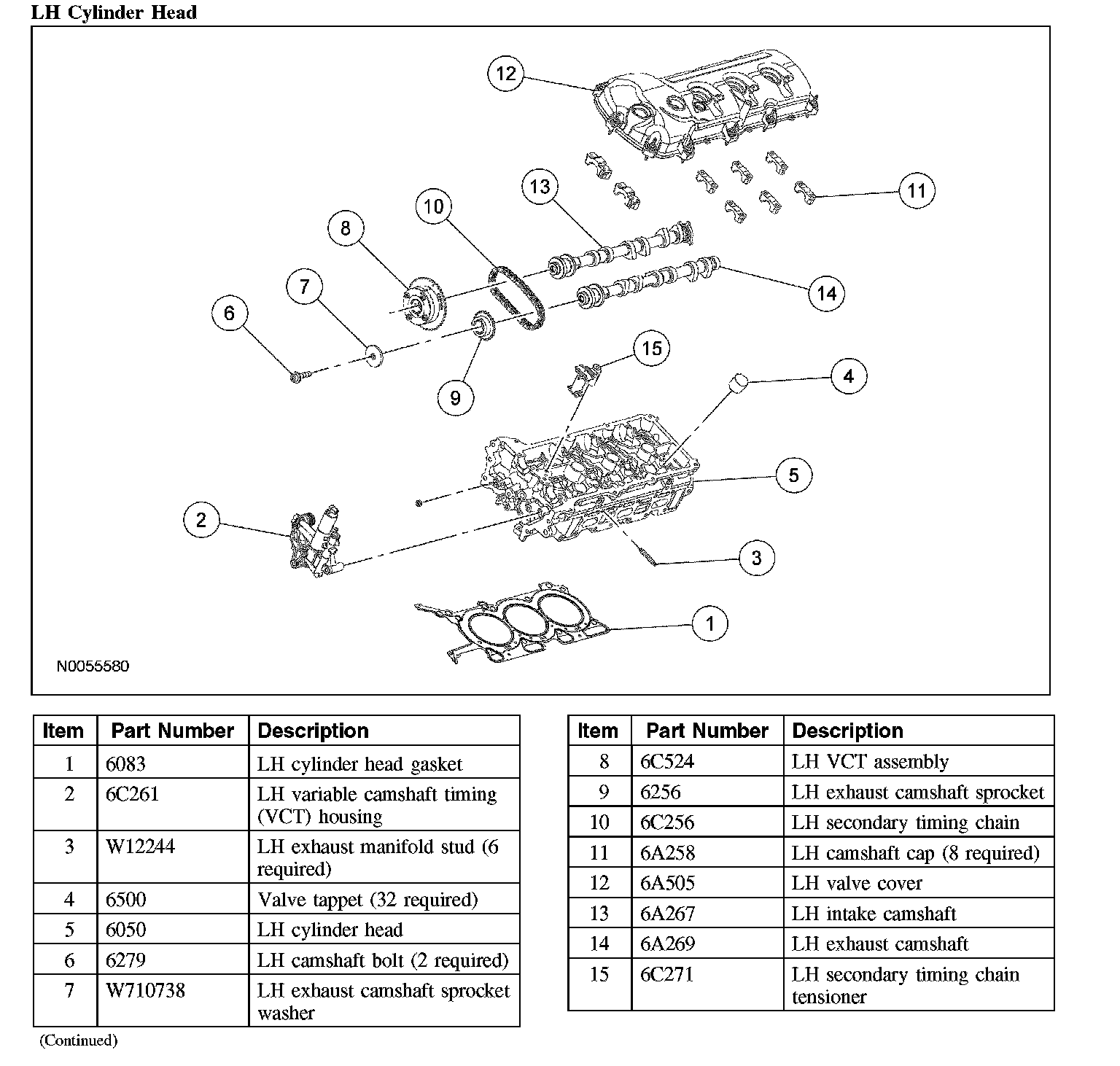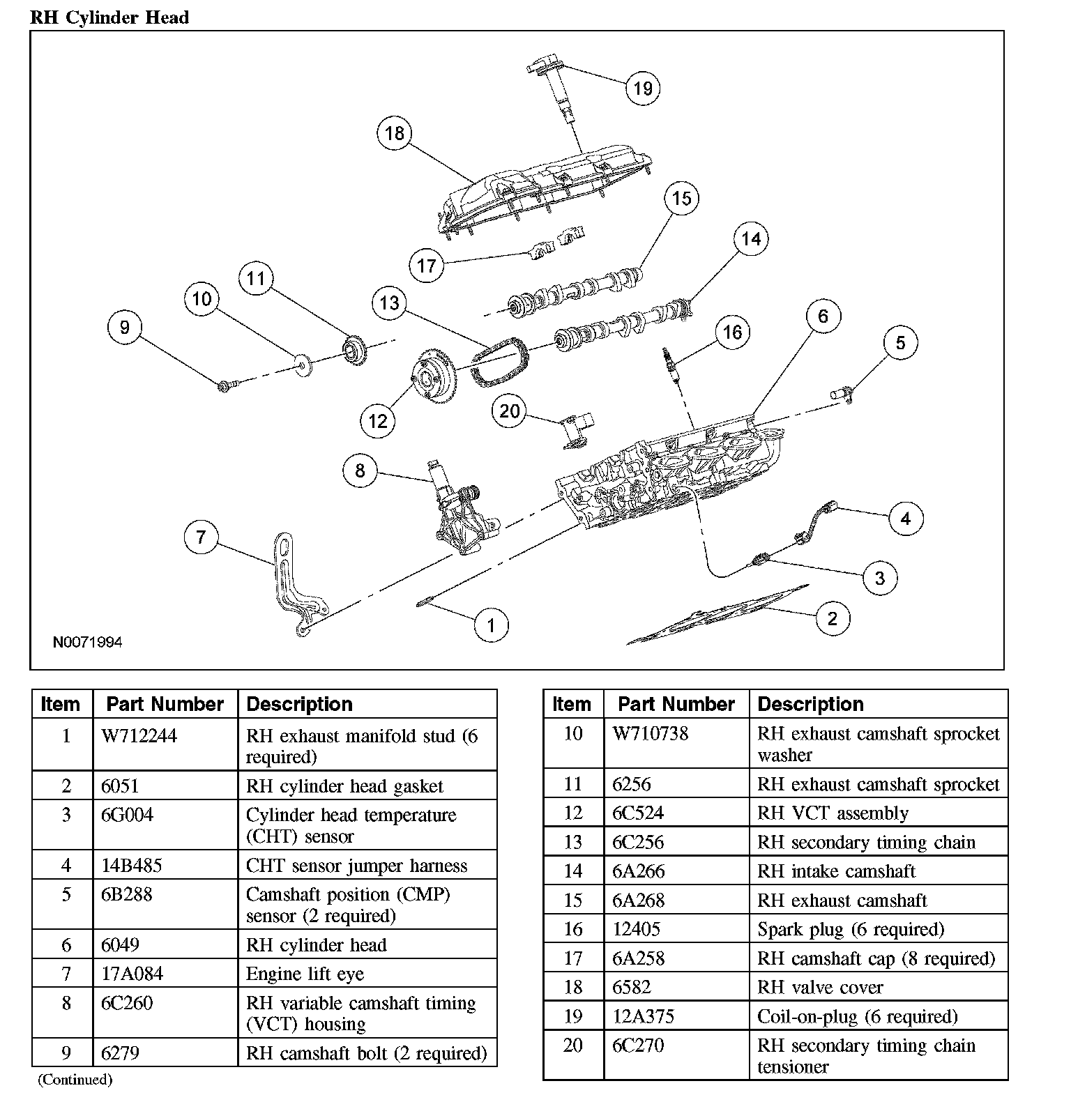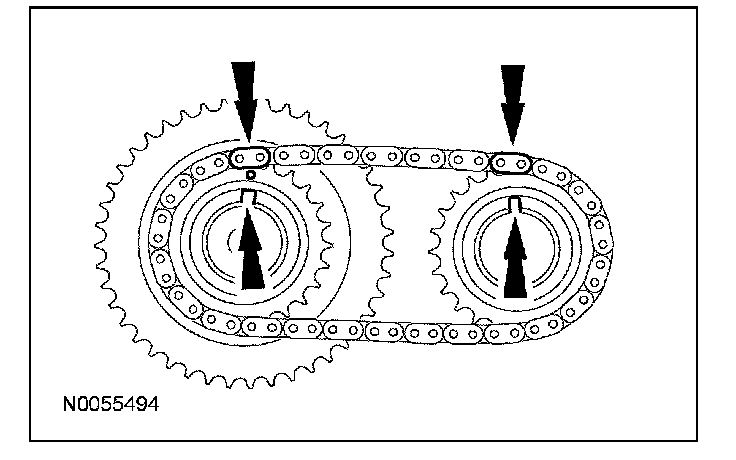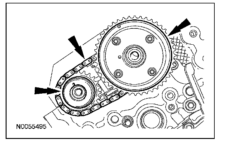 29. Assemble the RH variable camshaft timing (VCT) assembly, the RH exhaust camshaft sprocket and the RH secondary timing chain.
