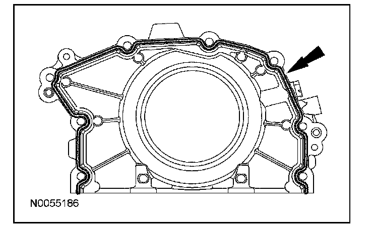 Apply a 3 mm (0. 11 in) bead of Motorcraft High Performance Engine RTV Silicone to the sealing surface of the crankshaft rear seal retainer.