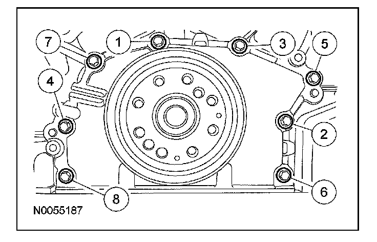 2. Install the crankshaft rear seal retainer and the 8 bolts.