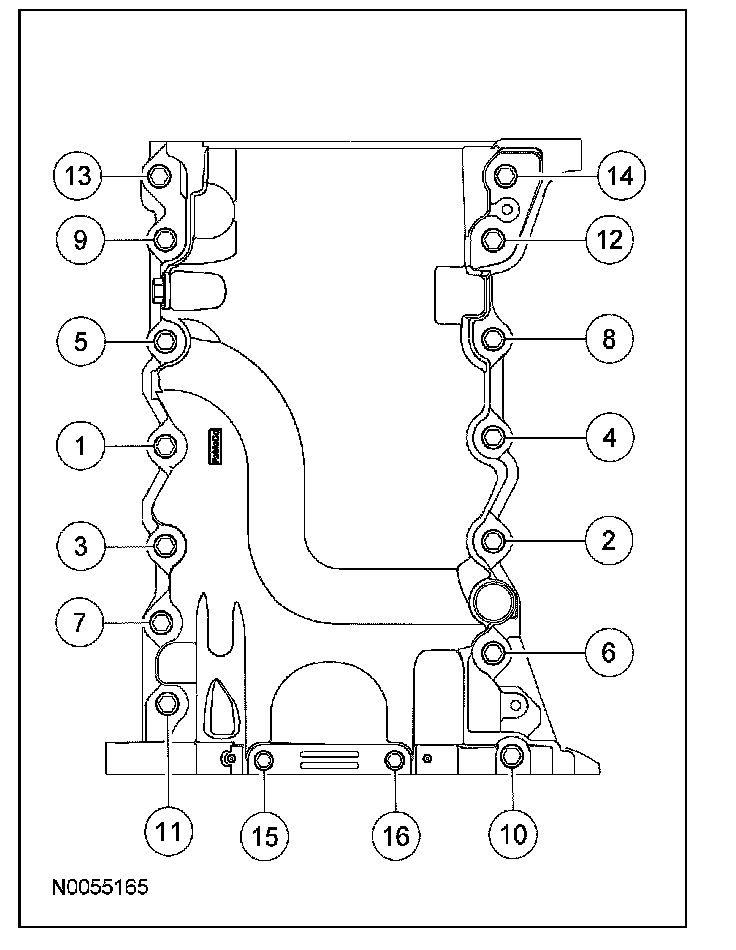 10. Install the remaining oil pan bolts. Tighten all the oil pan bolts in the sequence shown.