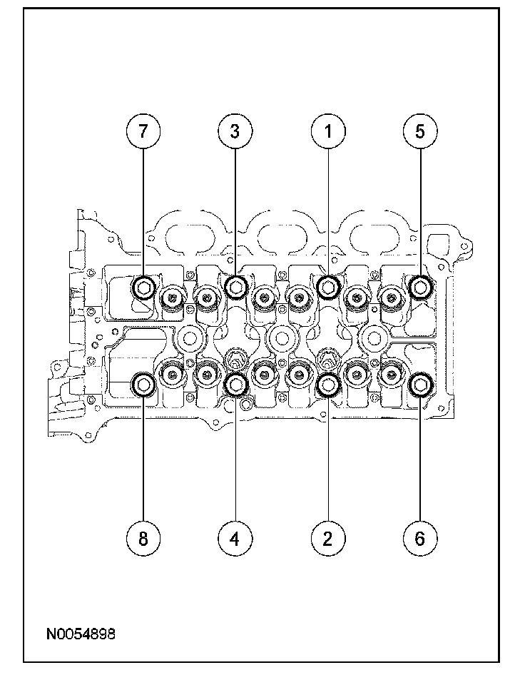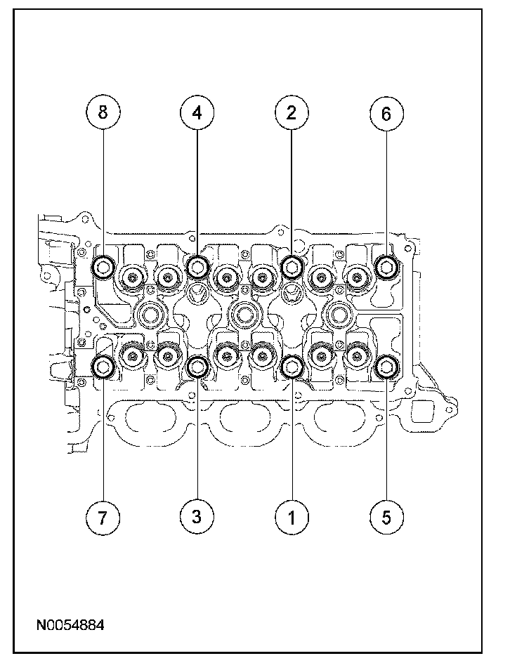 17. Install a new gasket, the LH cylinder head and 8 new bolts. Tighten in the sequence shown in 5 stages: