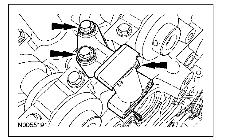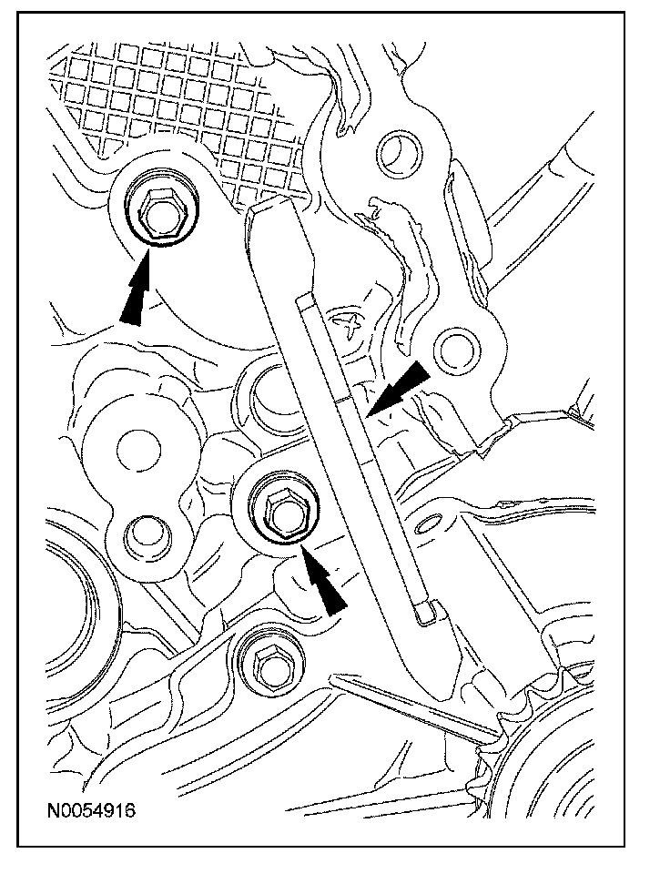 27. Install the RH secondary timing chain tensioner and the 2 bolts.