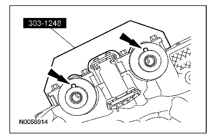 Rotate the RH camshafts to the top dead center position and install the special tool on the flats of the camshafts.