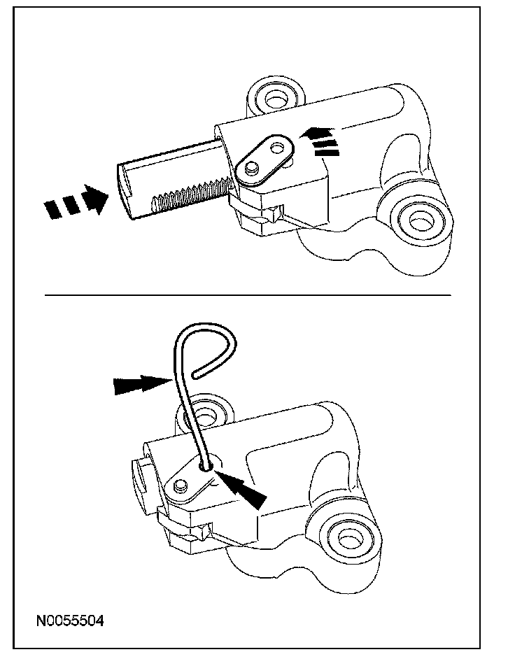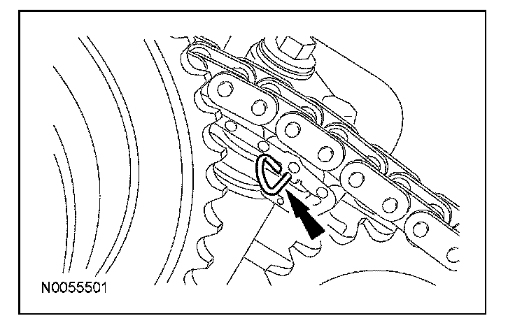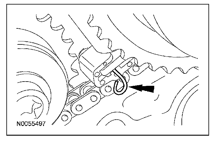 32. Remove the lockpin from the RH secondary timing chain tensioner.