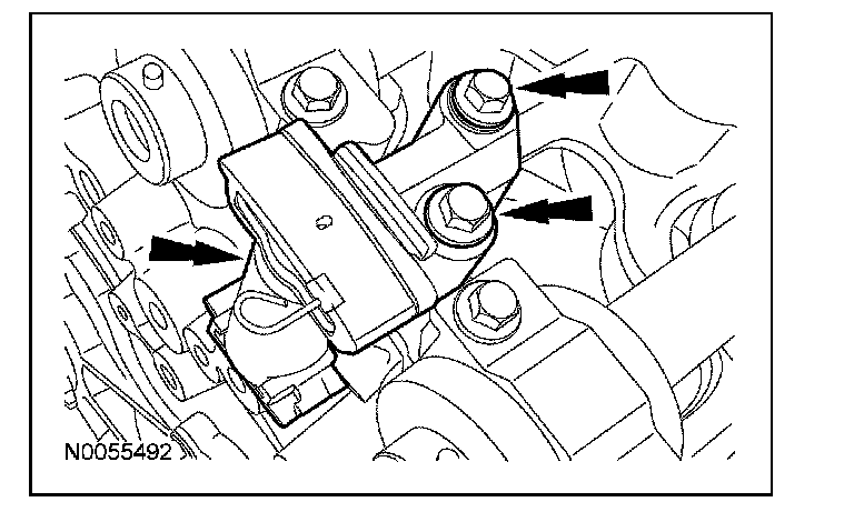 58. Install the engine mount bracket and the 2 bolts.