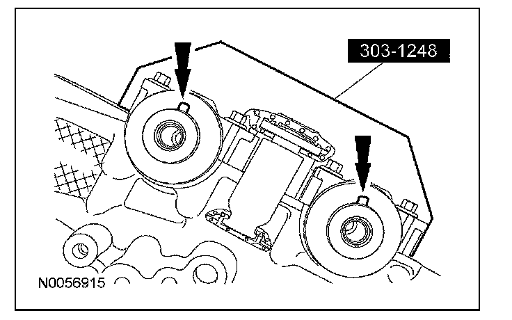 Rotate the LH camshafts to the top dead center position and install the special tool on the flats of the camshafts.