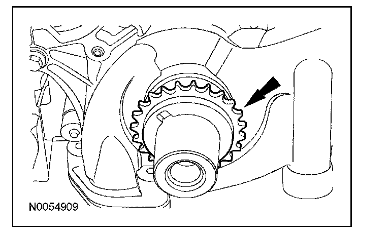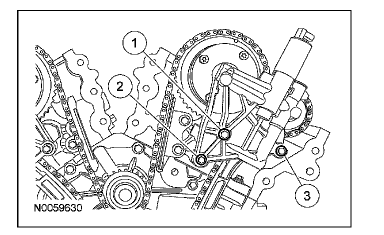 49. CAUTION: Make sure the dowels on the variable camshaft timing (VCT) housing are fully engaged in the cylinder head prior to tightening the bolts. Failure to follow this process will result in severe engine damage.