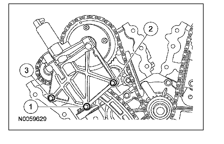 46. NOTE: It may be necessary to rotate the crankshaft slightly to remove slack from the timing chain and install the tensioner.