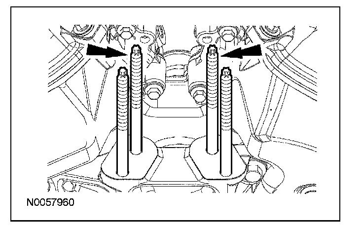 57. Install the 2 engine mount studs.