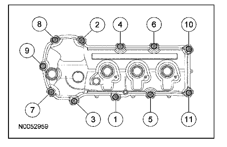NOTE: If the valve cover is not installed and the fasteners tightened within 4 minutes, the sealant must be removed and the sealing area cleaned. To clean the sealing area, use silicone gasket remover and metal surface prep. Follow the directions on the packaging. Failure to follow this procedure can cause future oil leakage.