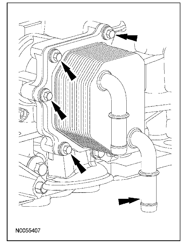 If equipped, install a new oil cooler, new gaskets and the 6 bolts.