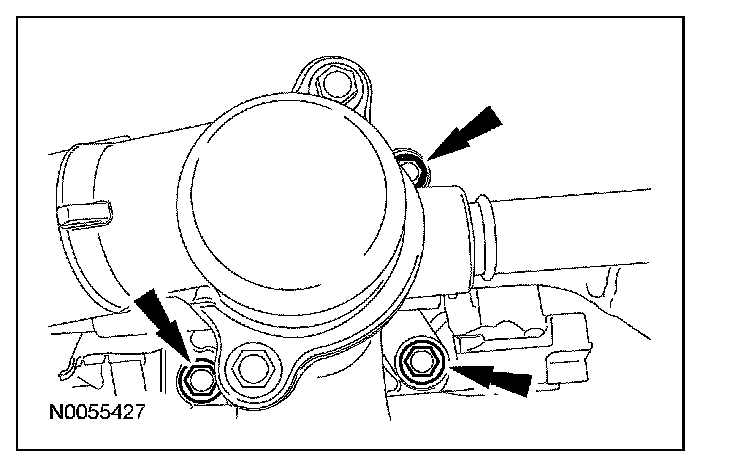 75. Using a new gasket, install the thermostat housing and the 3 bolts.