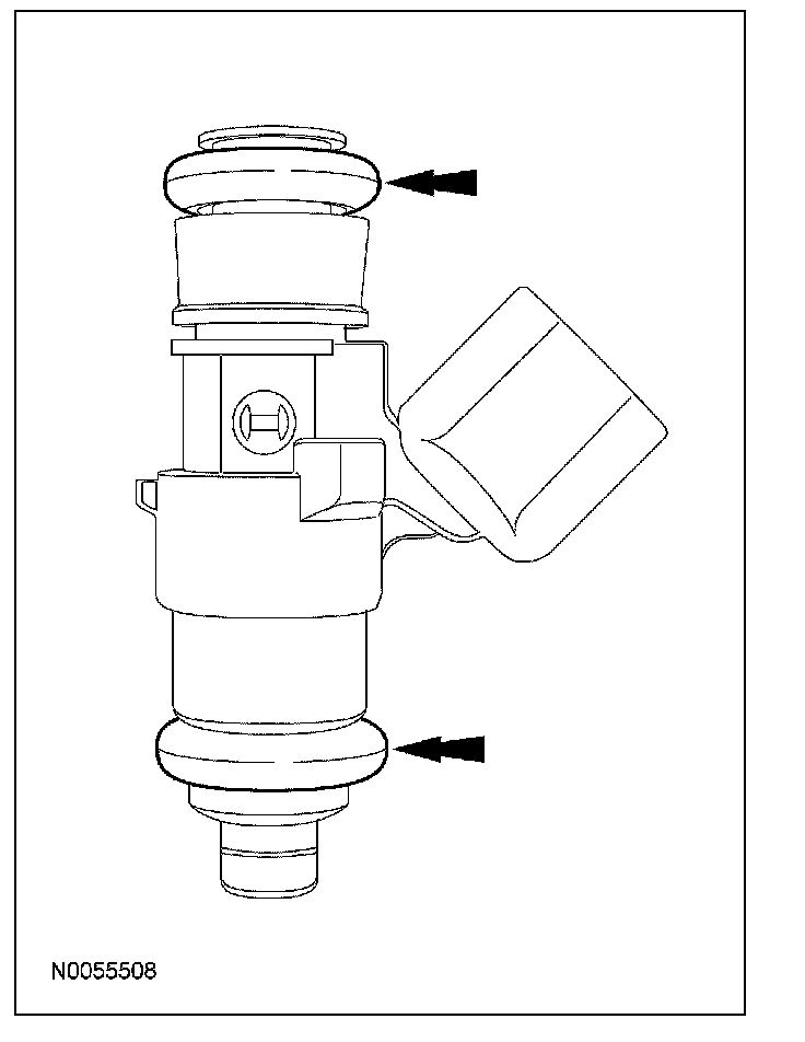 ^ Install the fuel injectors and the retaining clips onto the fuel rail.
