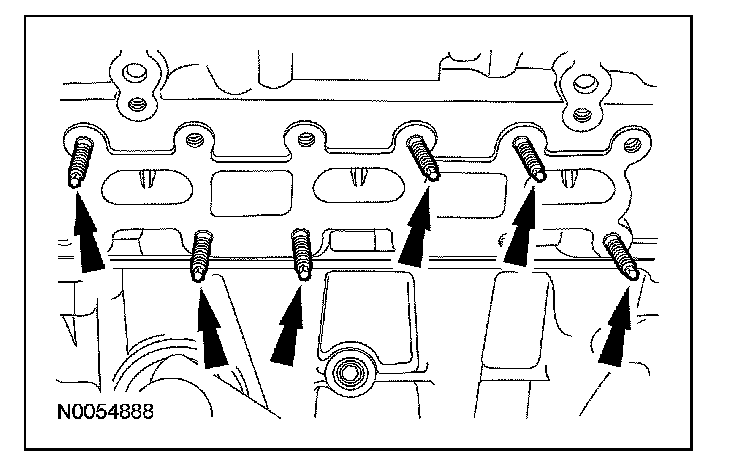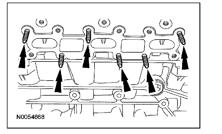 85. CAUTION: Failure to tighten the exhaust manifold nuts to specification a second time will cause the exhaust manifold to develop an exhaust leak.