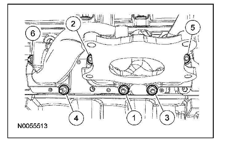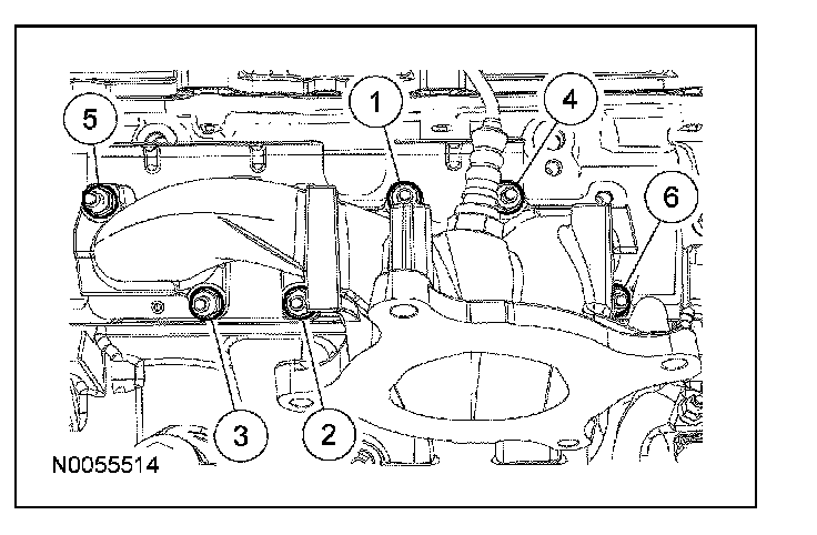 Using a new gasket, install the RH exhaust manifold and 6 new nuts. Tighten in 2 stages in the sequence shown: