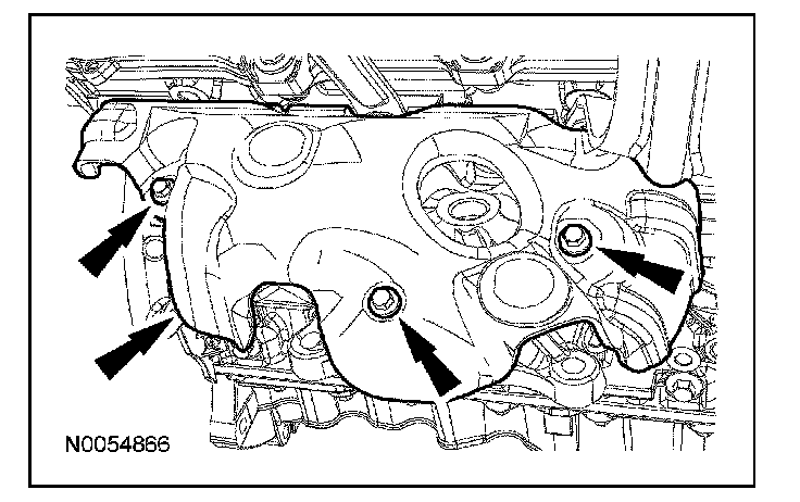 Apply a 8 mm (0.31 in) bead of Motorcraft High Performance Engine RTV Silicone to the engine front cover-to-LH cylinder head joints.
