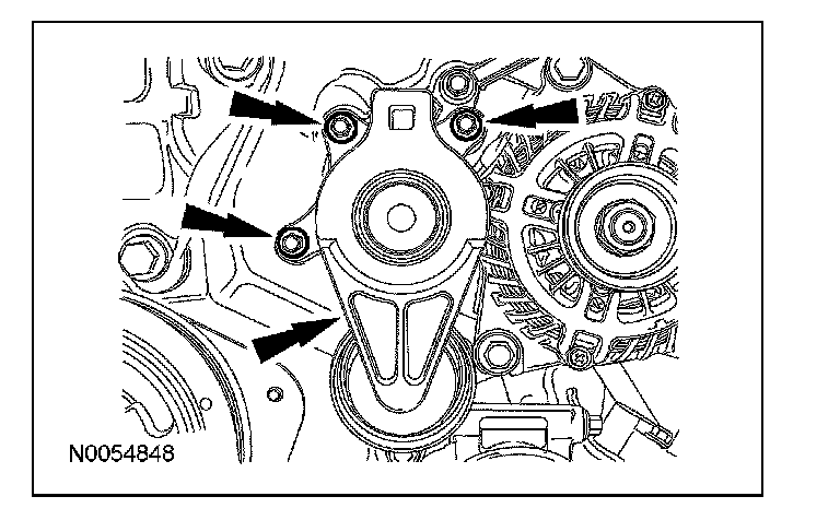 94. Install the accessory drive belt tensioner and the 3 bolts.