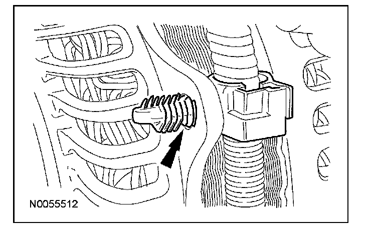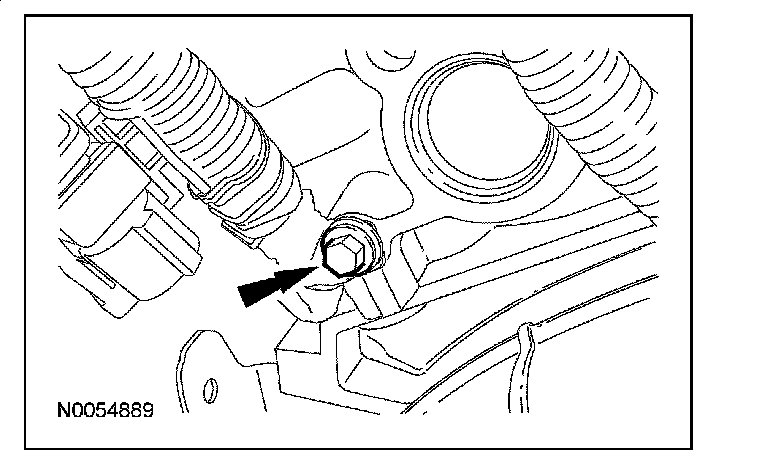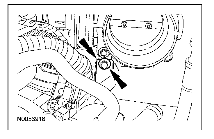 107. Install the wiring harness retainer bolt on the rear of the LH cylinder head.