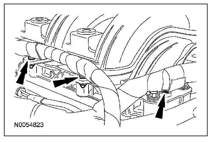 125. Install the upper intake manifold support bracket and the 2 bolts (1 shown).