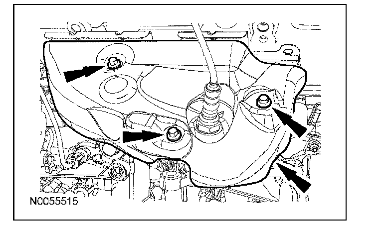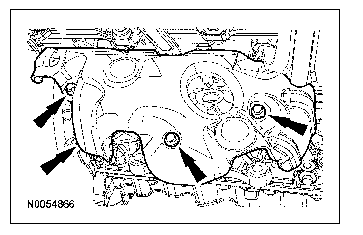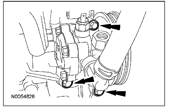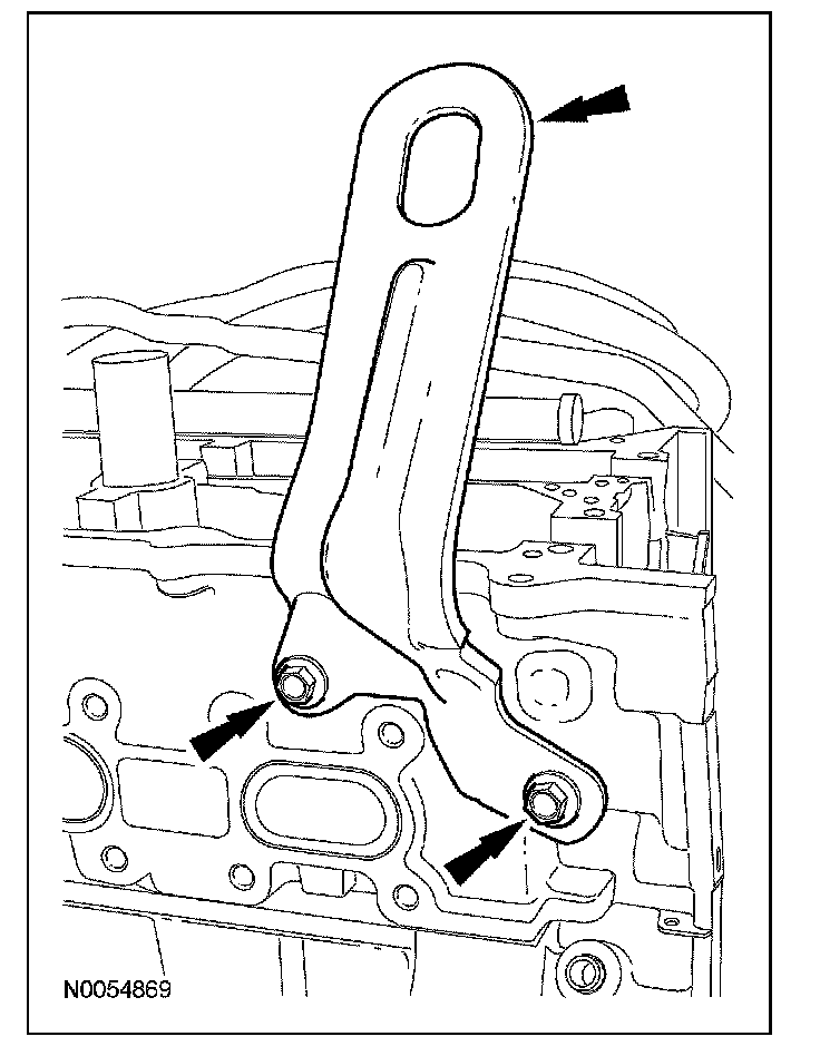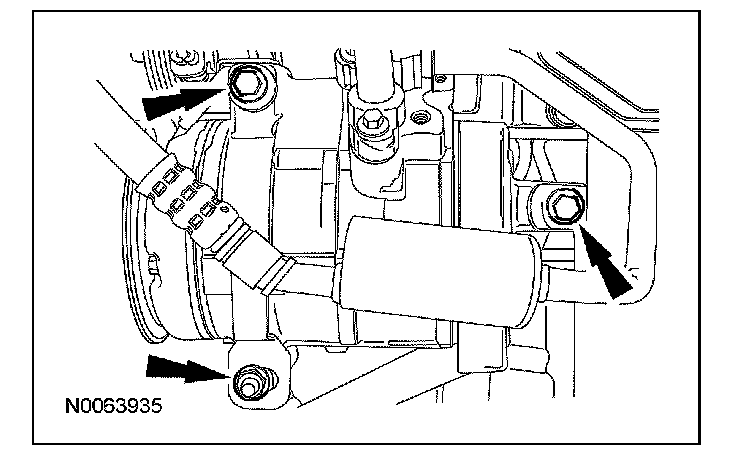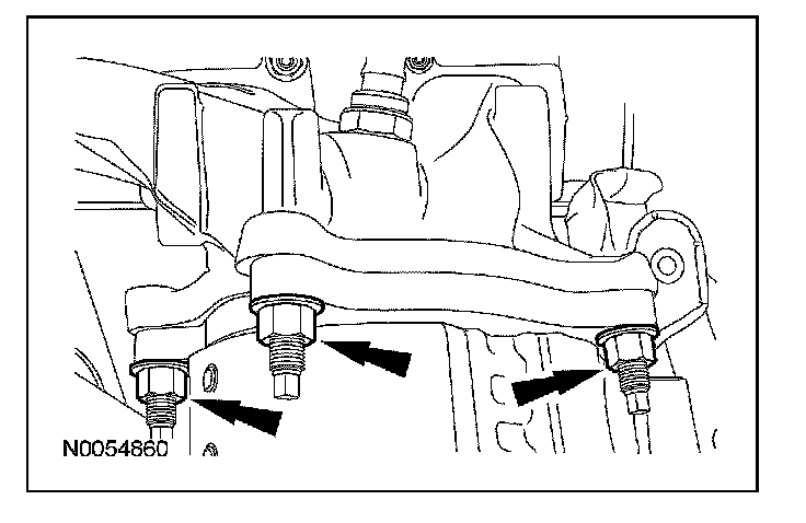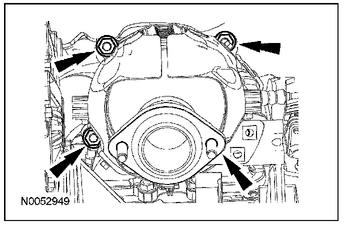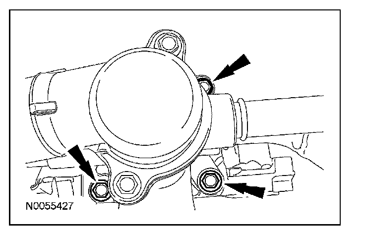 63. Remove the 3 thermostat housing-to-lower intake manifold bolts.