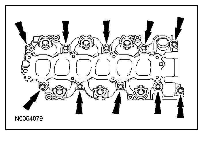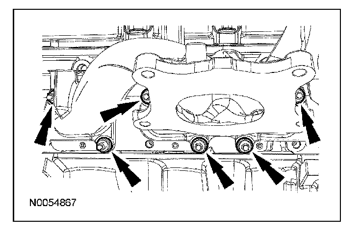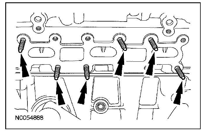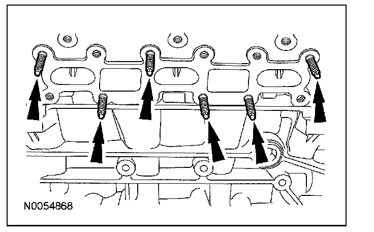 54. Remove and discard the 6 RH exhaust manifold studs.