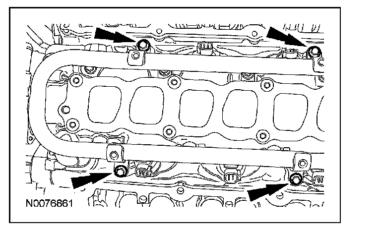 62. Remove the 4 bolts and the fuel rail and injectors as an assembly.