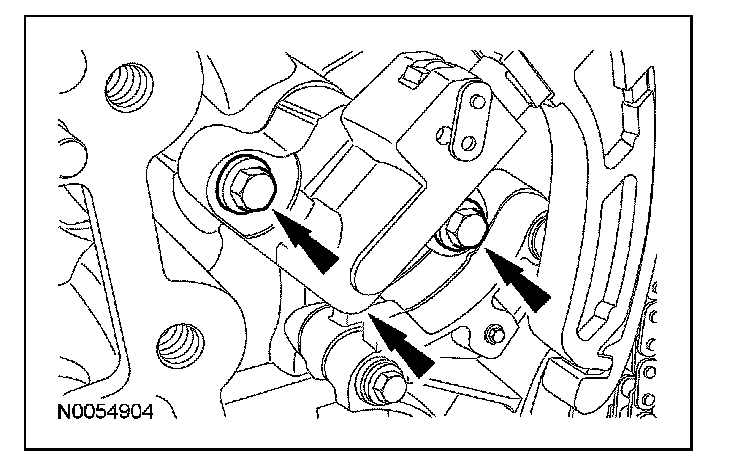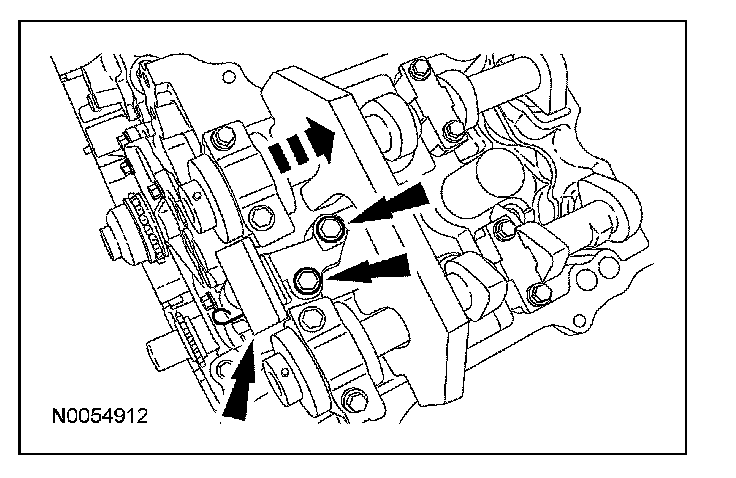10. Install the new VCT bolt and new exhaust camshaft bolt and the original washers. Tighten in 4 stages.
